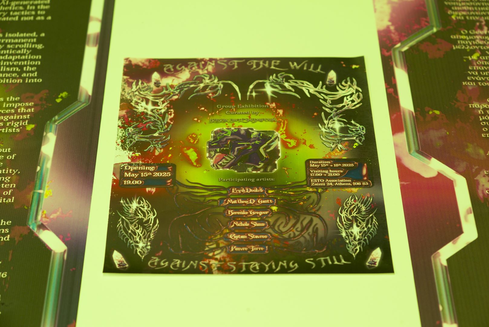 - Against the Will, Against Staying Still is a group exhibition that examines immediacy as both a creative tool and a survival strategy in response to an ever-changing, crisis-spawning present. Equipped with unique fictional weapons, six artists shaped their creative process into one of rapid decision-making, communication, and upcycling, with the intention of battling the exhibition’s boss: the curator.