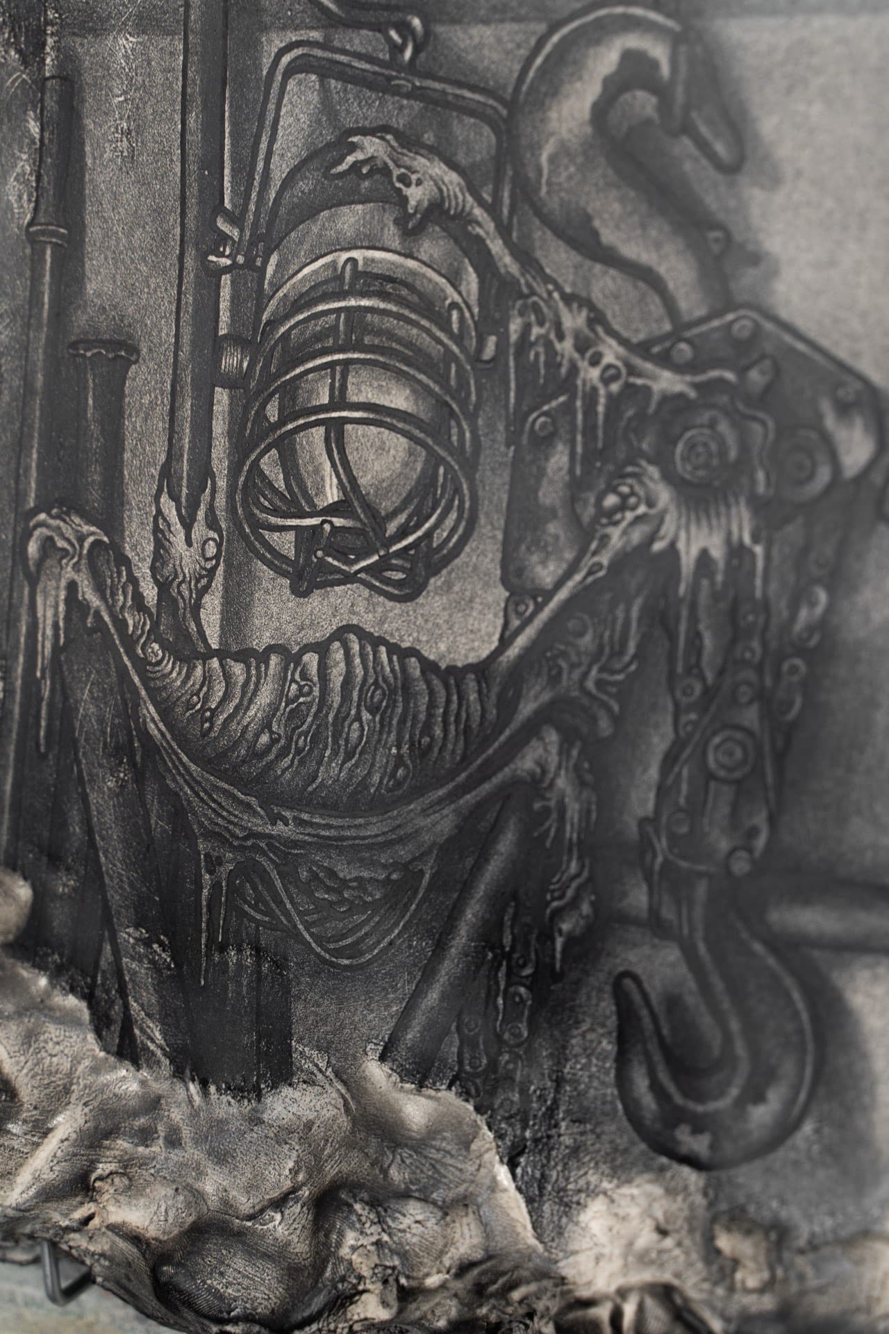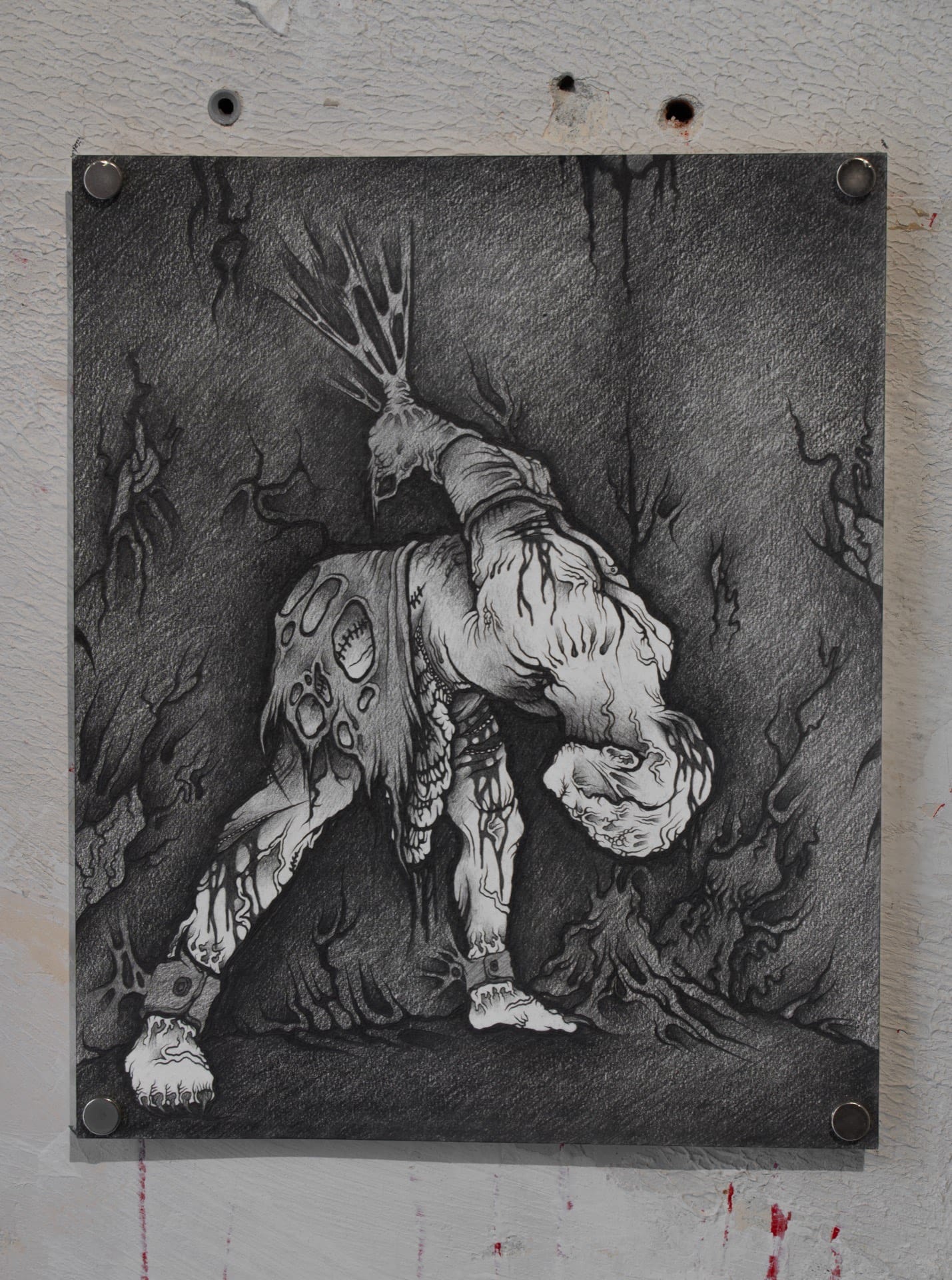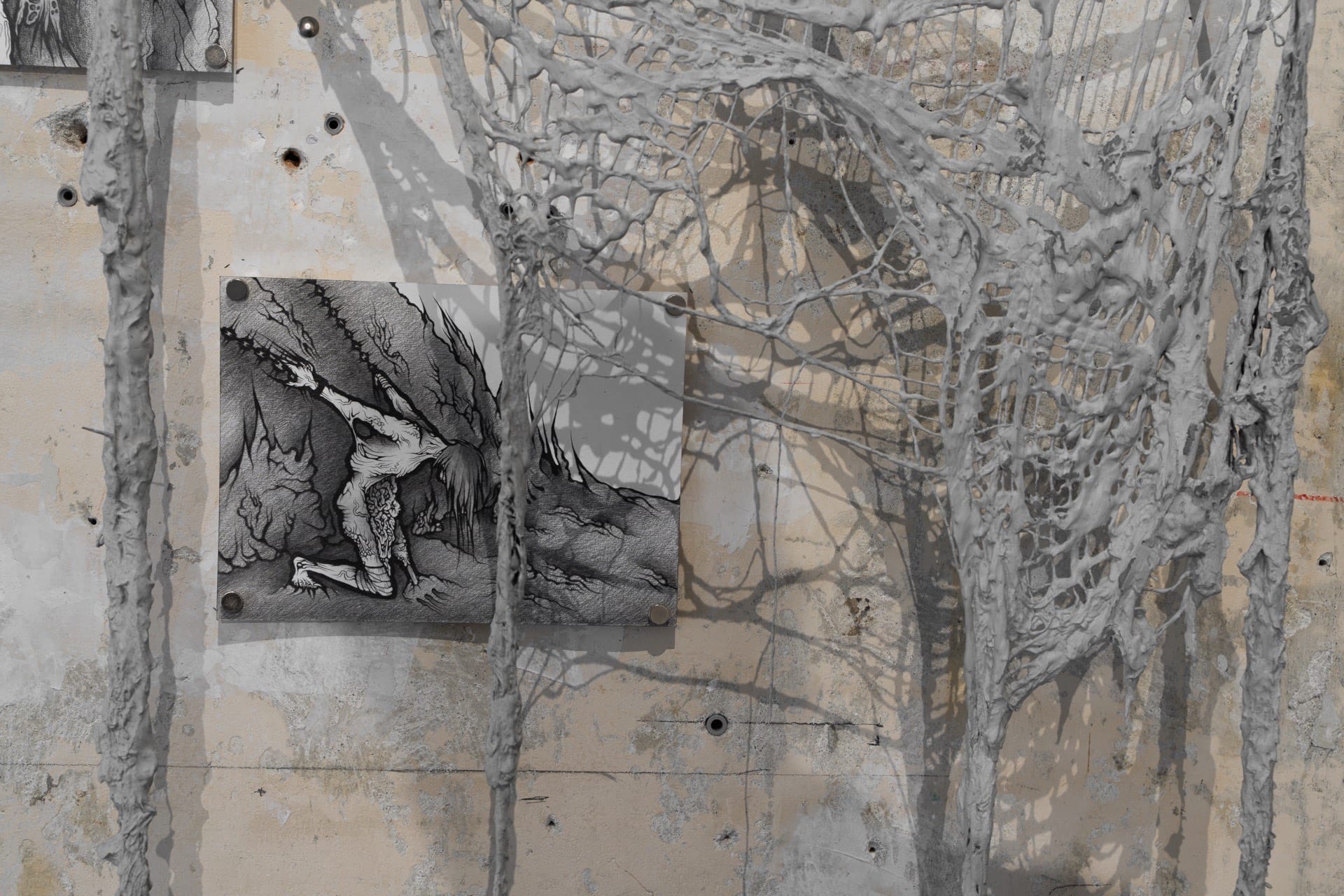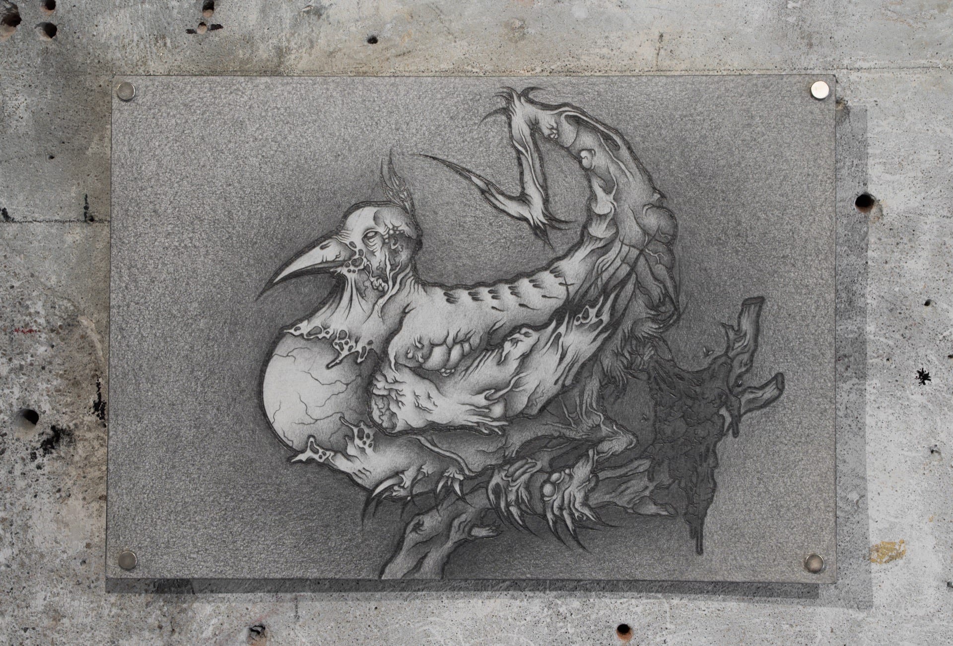 1. Injured, 2023, graphite on air-dry clay, 20.2x15.6cm 2. Rotting, 2023, graphite on paper, 25x18cm