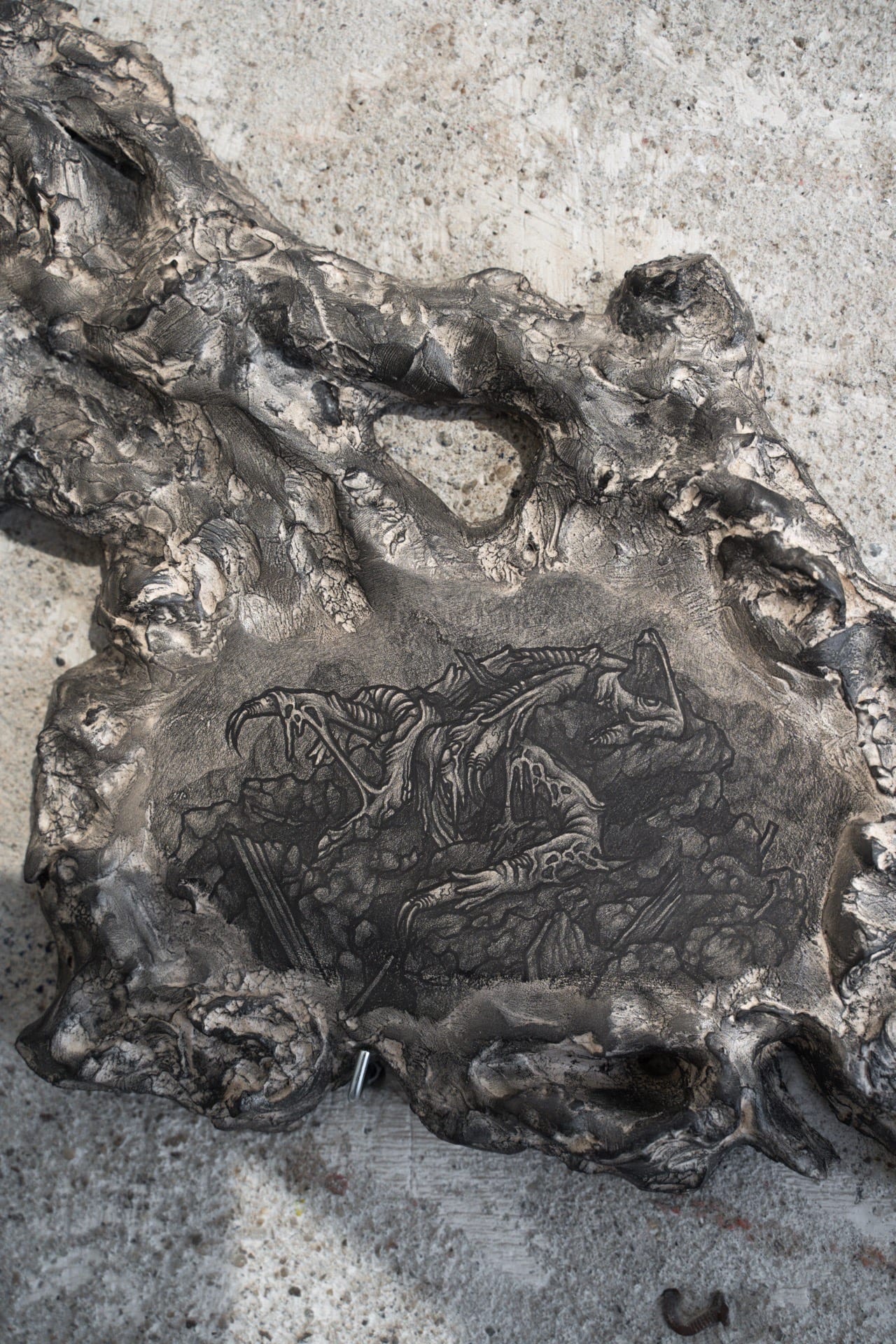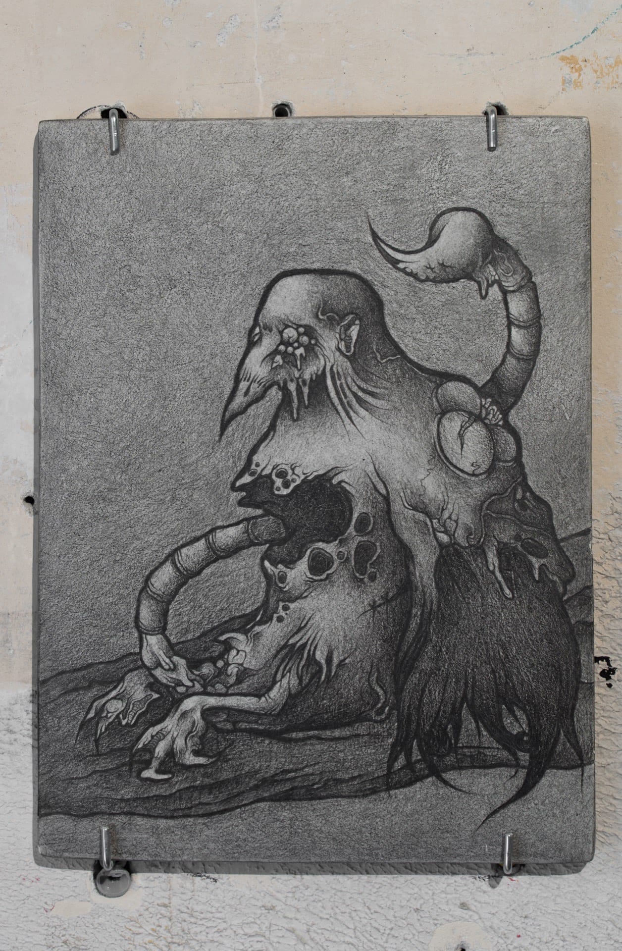 Airborne Scourge II, 2023, graphite on air-dry clay, 25.5x19cm