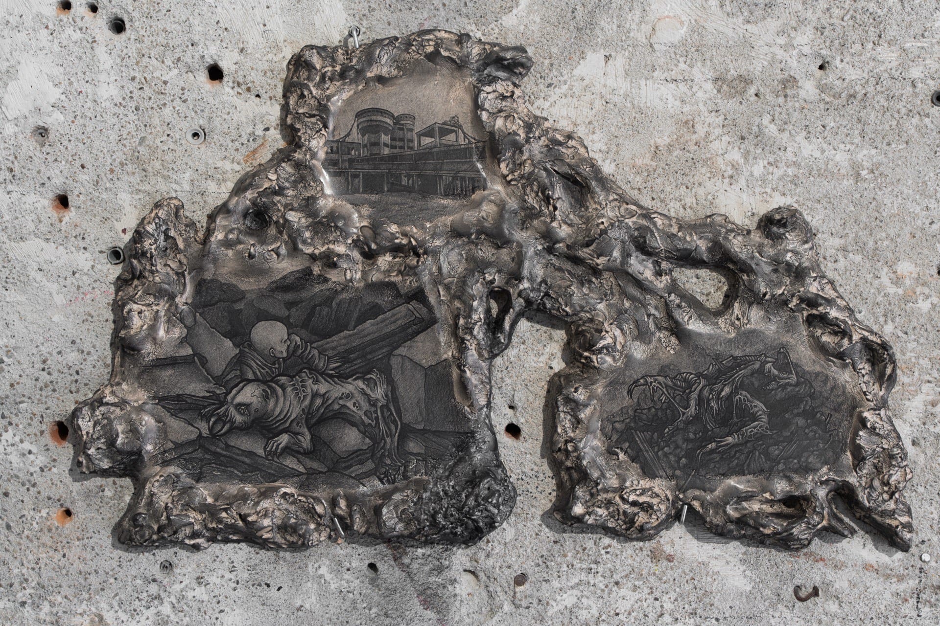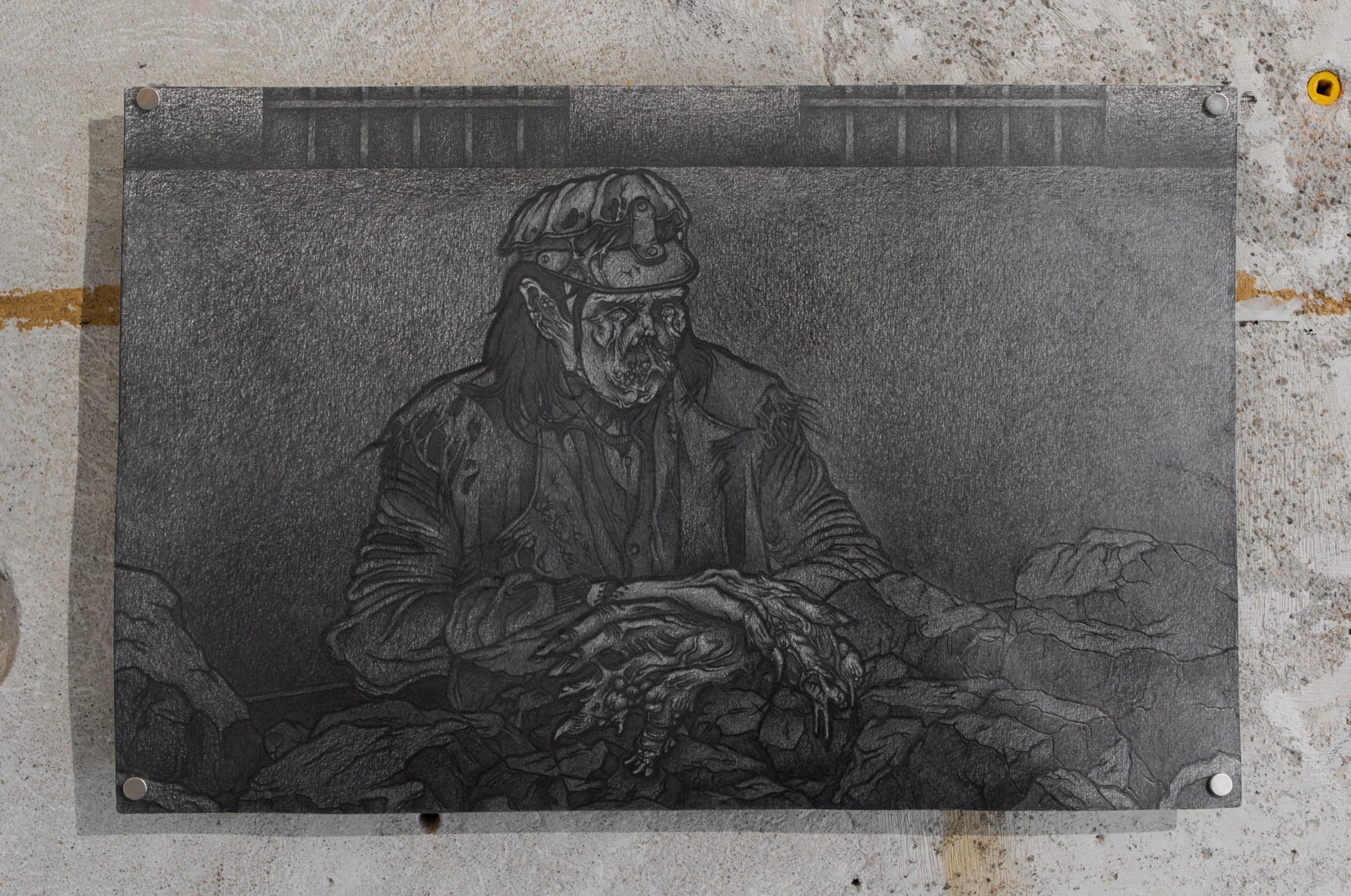 Derelict Site II, 2025, graphite on ceramics, 41x28cm