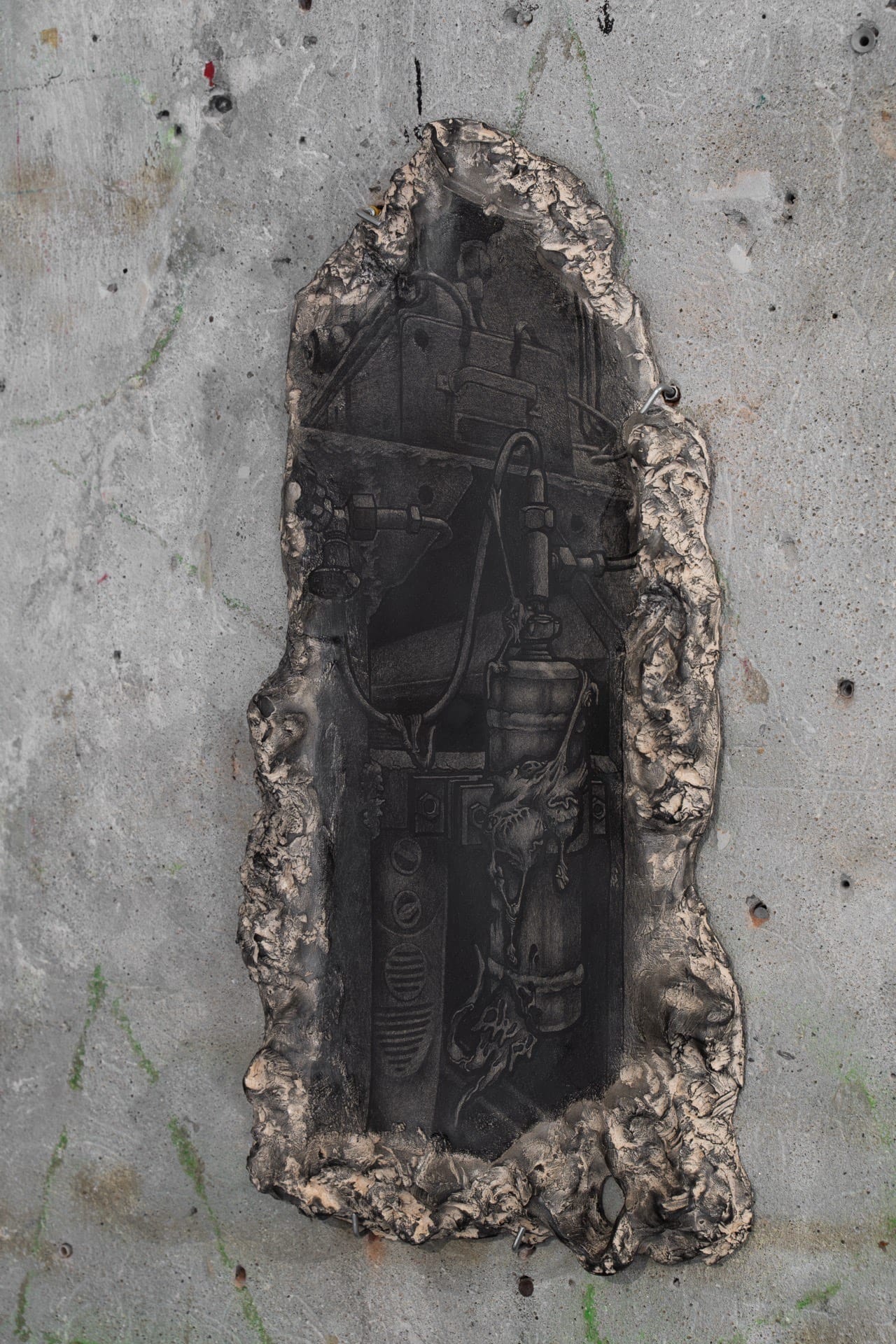 Derelict Site I, 2025, graphite on ceramics, 51.5x26cm