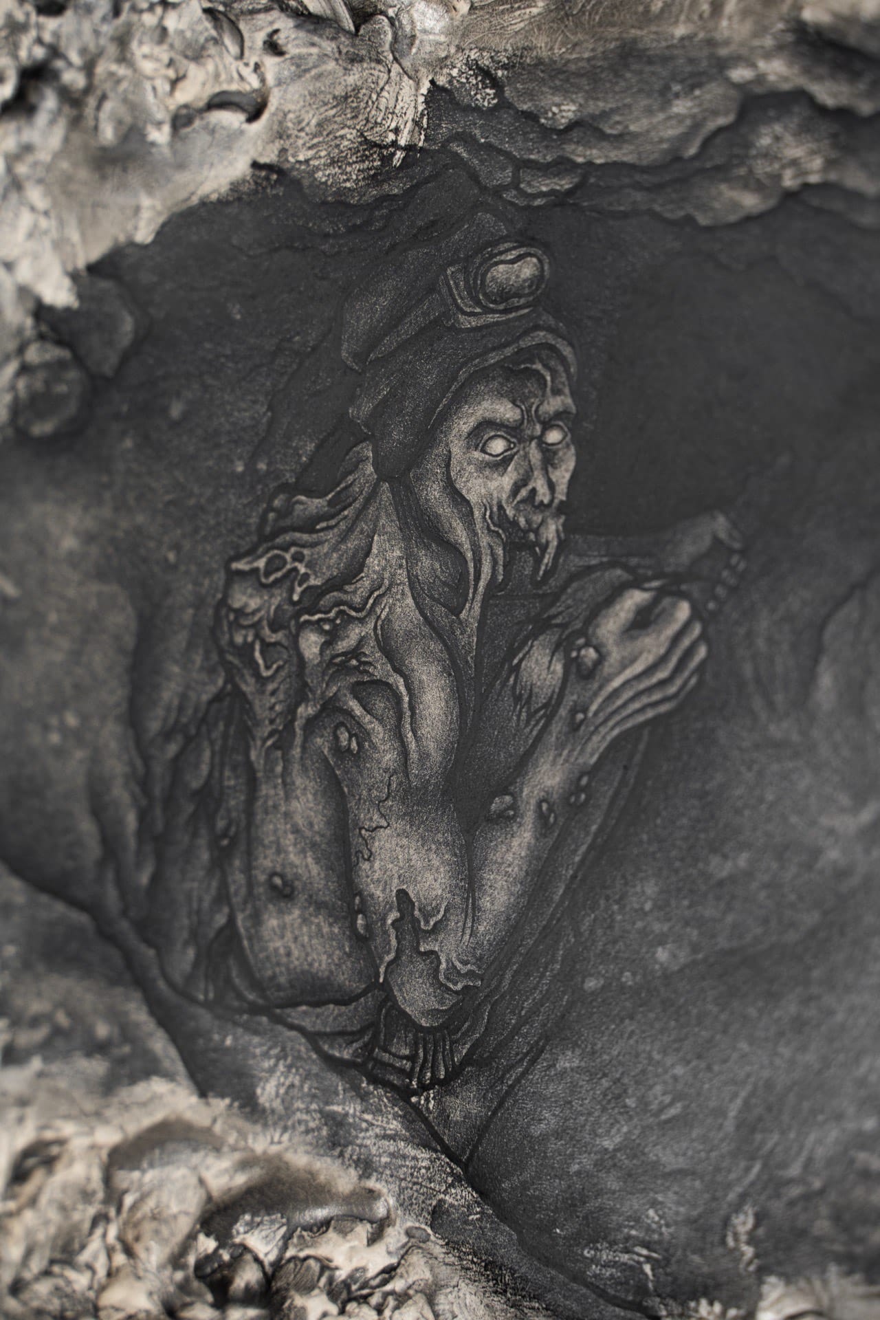 Untitled, 2023, graphite on air-dry clay, 9x8cm
