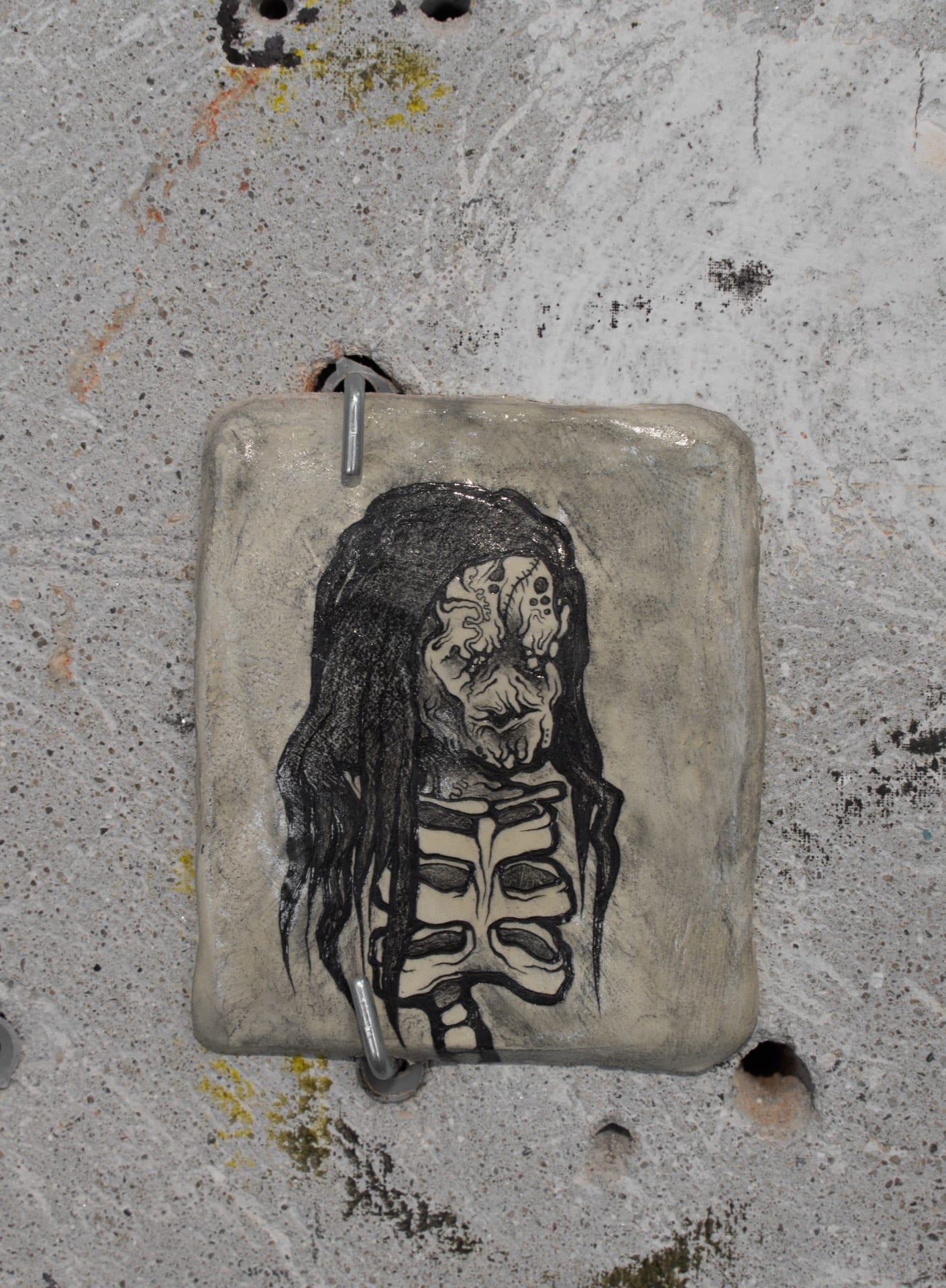 Searching for them, 2025, graphite on ceramics, 56x35cm